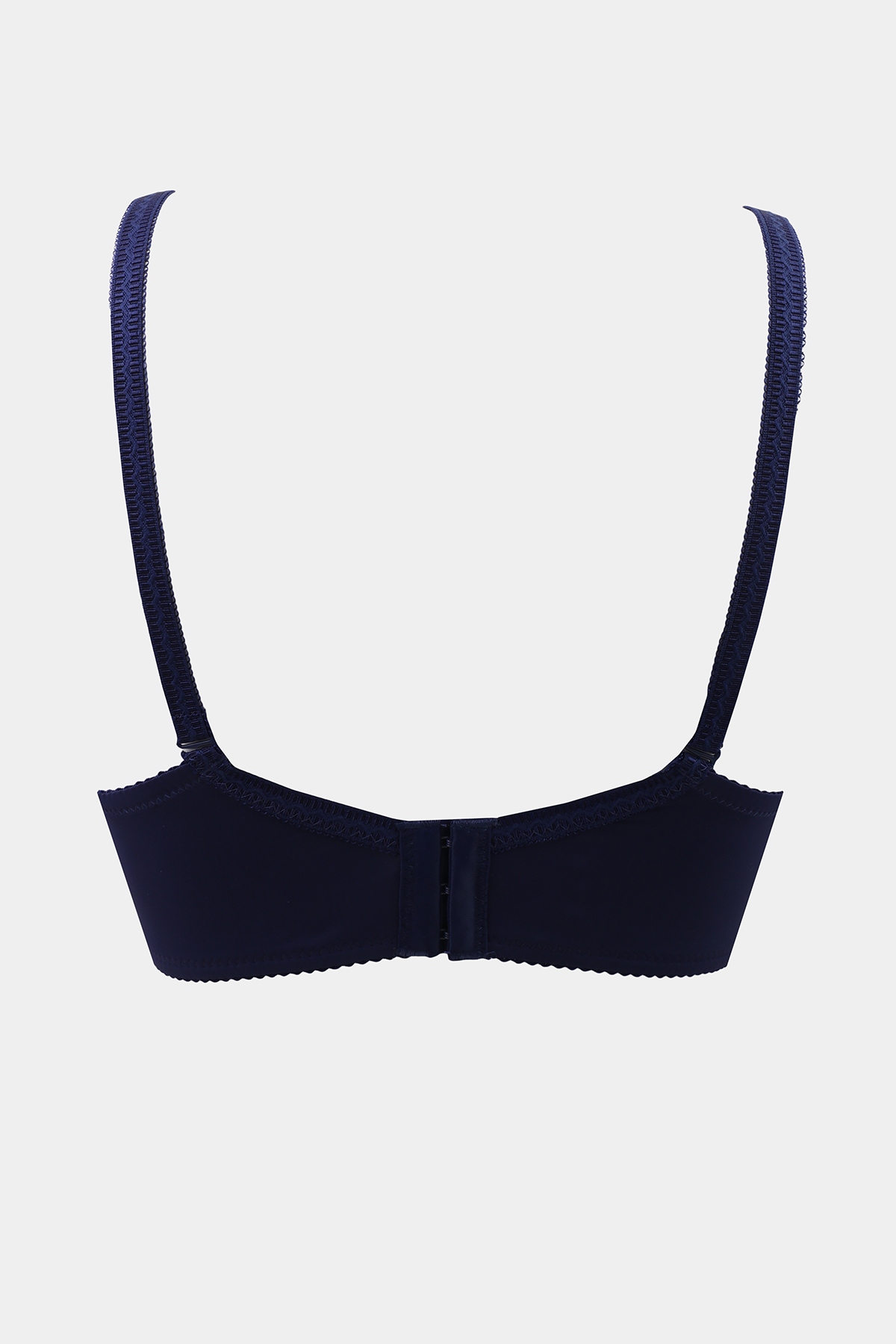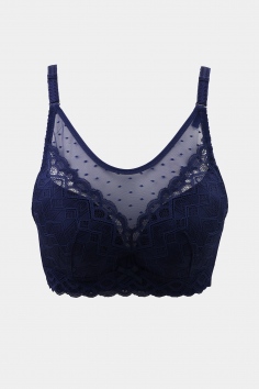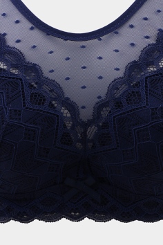Красивый кружевной женский бюстгальтер с формованными чашечками и с косточками. Застёжка на крючки и петли сзади. Съёмные бретели регулируются по длине. Бюстгальтер украшен бантиком посередине.