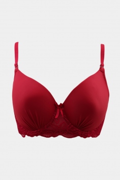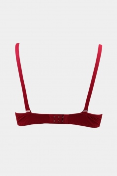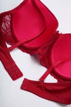 Женский бюстгальтер с чашками и косточками. Застежка на крючки и петли сзади. Съемные бретели регулируются по длине. Бюстгальтер украшен кружевом и бантиком посередине.