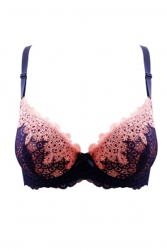 Женский бюстгальтер с формованными чашками и с косточками. Застёжка на крючки и петли сзади. Съемные бретели регулируются по длине. Бюстгальтер украшен тонким кружевом на чашечках и бантиком посередине.