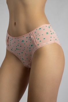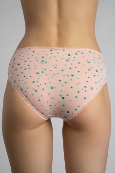 Нежно-розовые трусы-слипы с милым цветочным принтом. Модель выполнена из мягкой смеси бамбука и хлопка с добавлением эластана, что обеспечивает отличную посадку и комфорт в течение дня. Эластичная резинка и деликатная кружевная отделка по краям делают изделие особенно приятным в носке.