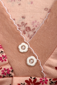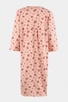 Женская ночная сорочка свободного кроя с рукавами и V образным вырезом горловины. Для обеспечения достаточной свободы нижняя часть полочки со сборкой. Сорочка украшена цветами. Ткань приятная к телу. С начесом.