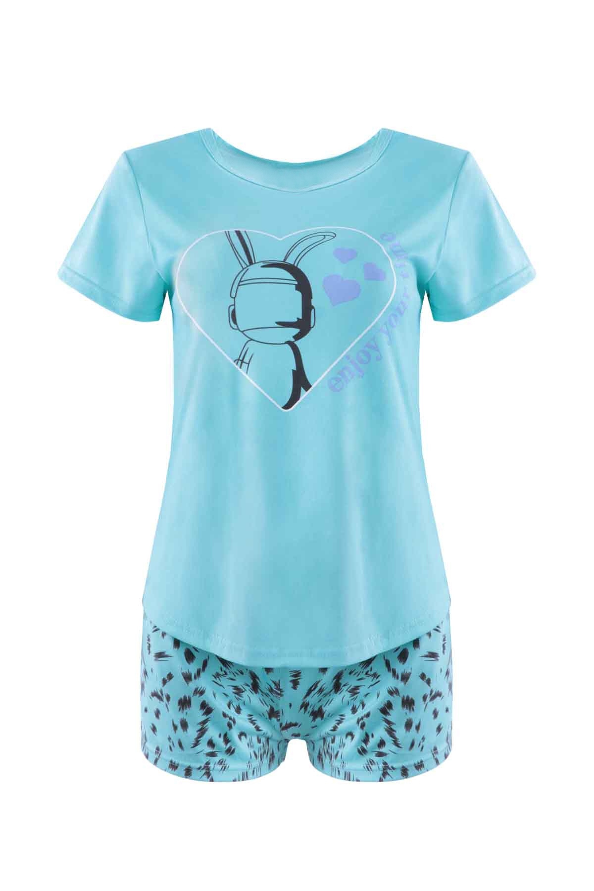 Гардероб женщины включает в себя не только выходную, но и домашнюю одежду. Женская пижама состоит из футболки и шорт. Футболка прямого кроя и круглым вырезом горловины. Шорты с эластичной резинкой в поясе. Лёгкая ткань.